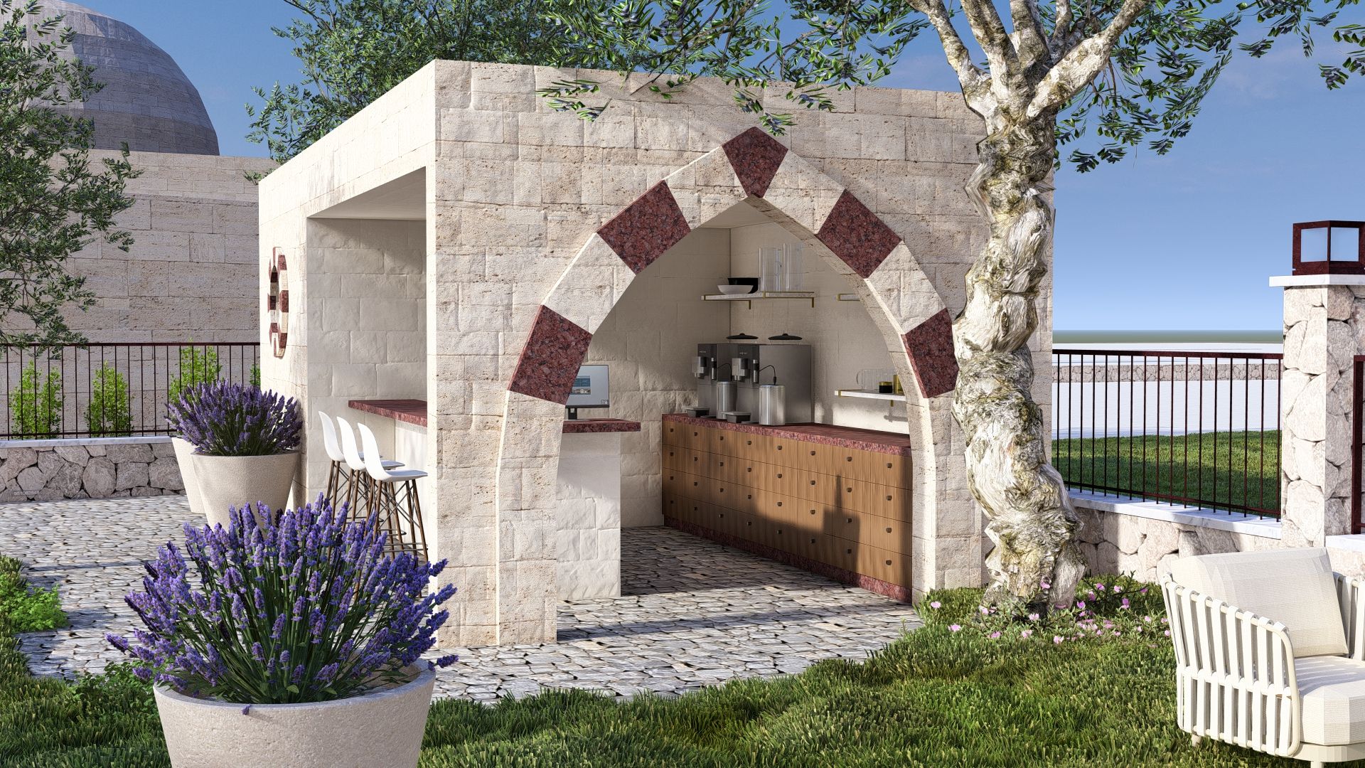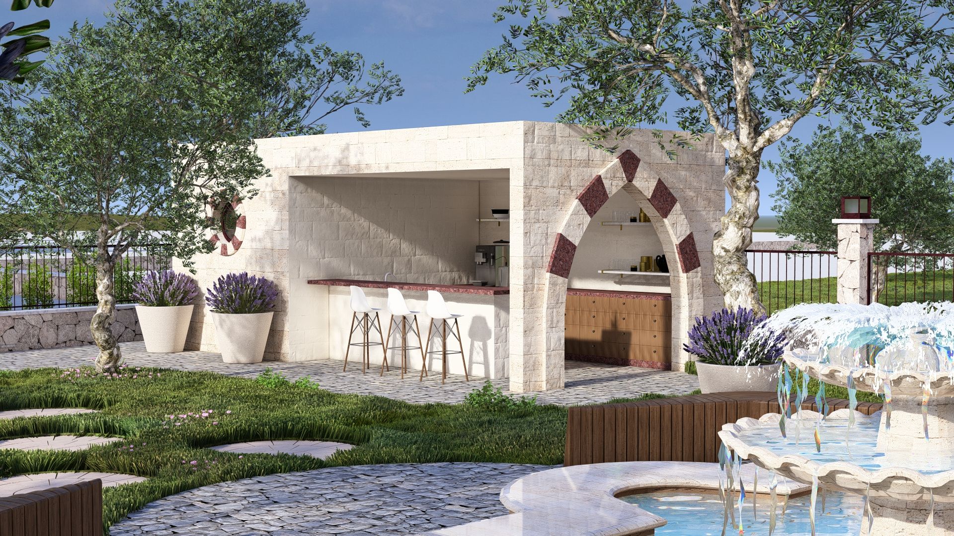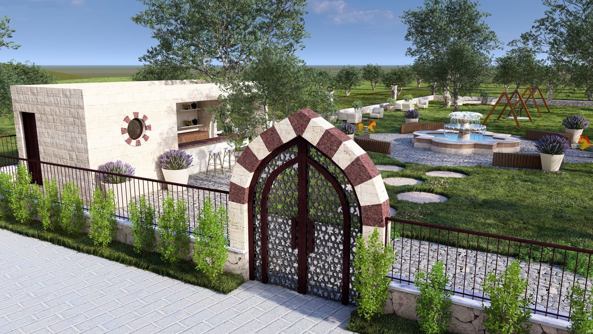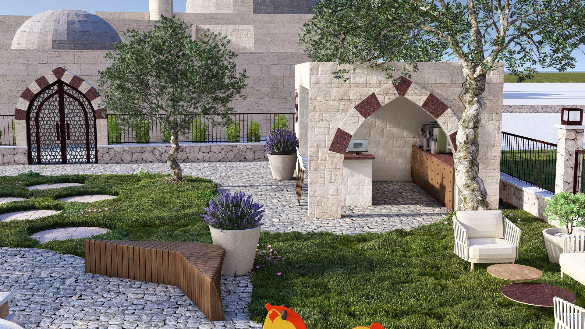 Oriental-style Courtyard with Seating and Playground